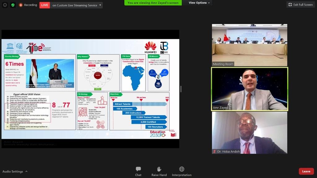 شاركت شركة هواوي تكنولوجيز – الرائدة بقطاع الاتصالات وتكنولوجيا المعلومات –في جلسة المعهد الدولي للتعليم عبر الإنترنت ٢٠٢١ تحت عنوان “إعادة بناء التعليم العالي بشكل أفضل: نظام بيئي مؤسسي يقود ويدعم التعلم الهجين وعبر الإنترنت”، والذي أقامه المعهد الدولي للتعلم عن بعد – والذي يعد مبادرة عالمية ينظمها المركز الدولي للابتكار تحت رعاية منظمة اليونسكو .(UNESCO-ICHEI) خلال الجلسة استعرضت شركة هواوي قصة نجاح برنامجها التدريبي الرائد “بنك القدرات” iTB / ICT Talents Bank بالتعاون مع الوزارات والجامعات المصرية.