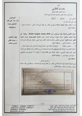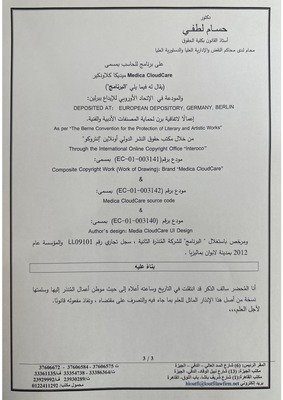 وذكر الإنذار -الذي تضمن صور ضوئية من العلامات التجارية المسجلة من عدة دول – أن شركة هيلث إنسايتس آسيا (المنذرة) “مودعة برقم (EC-01-003140) بمسمى: Author’s design: Media Cloud Care UI Design لدى مكتب حق لمؤلف في برلين ومرخص بها للشركة المنذرة بسجل تجاري رقم LL09101 والمؤسسة عام 2012 بمدينة لابون بماليزيا والمرخص لها باستخدام حقوق البرمجيات وأنظمة دارة المنشآت الصحية خلال مديرها التنفيذي وممثلها القانوني”.