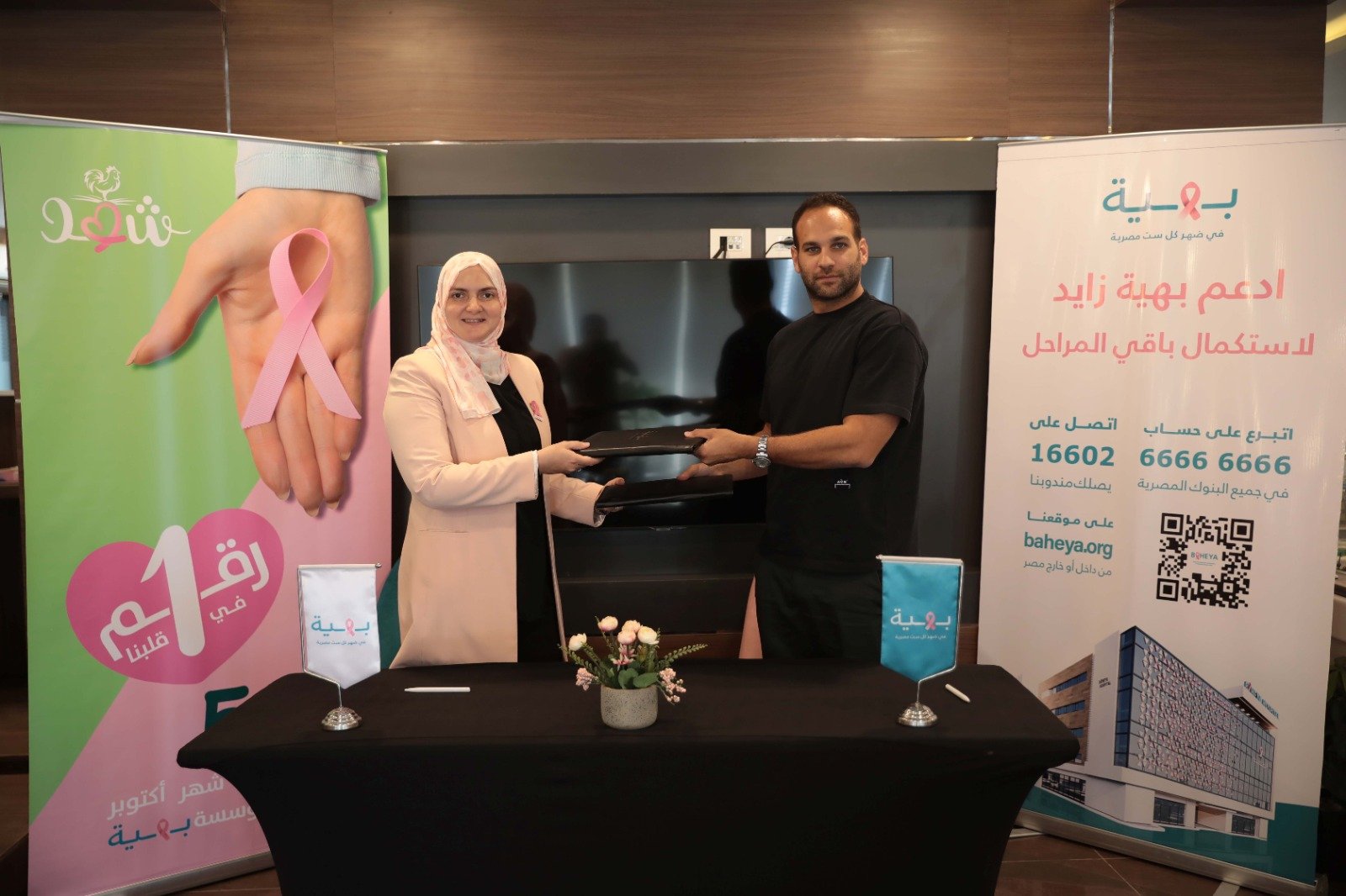 وقع بروتوكول التعاون السيد/إبراهيم وجدي الرئيس التنفيذي لشركة كايرو ثري أيه للدواجن، والدكتورة جيلان أحمد المدير التنفيذي لمؤسسة بهية للكشف المبكر وعلاج سرطان الثدي، وذلك بحضور السيد/ محمد عارف مدير عام السلع الاستهلاكية بشركة كايرو ثري أيه، والسيدة/ لميا النعمة رئيس قطاع تنمية الموارد بمؤسسة بهية، والسيدة/ فاطمة حلمي مسؤول تنمية الموارد بالمؤسسة.