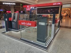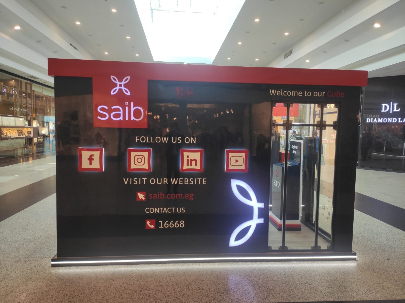 و أضاف الاستاذ / محمد على مدير إدارة الخدمات الالكترونية و الابتكار أن saib cube هو مفهوم مختلف للخدمة المصرفية يستهدف التواجد بين التجمعات الكثيفة للعملاء من خلال تصميم جذاب يتضمن الاستغلال الأمثل للمساحة و حيث تشمل الخدمات المقدمة ماكينة صراف آلى و شاشة تفاعلية لعرض منتجات البنك بالإضافة الى توفير “تابلت” لتسهيل الدخول على خدمة الانترنت البنكية بالإضافة إلى خدمة الهاتف الصوتى “saib voice” والذي يتيح للعملاء التواصل مع ممثل خدمة العملاء مشيرا أن أن تلك المراكز تستقبل عملاء البنك على مدار 7 أيام في الأسبوع من العاشرة صباحا حتى العاشرة مساءا