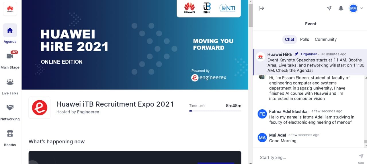 نظمت شركة هواوي تكنولوجيز مصر، الرائدة في مجال حلول تكنولوجيا المعلومات والاتصالات معرضها الافتراضي للتوظيف تحت عنوان “HiRE 2021″، التابع لبرنامج هواوي التدريبي الرائد “ICT Talent Bank / iTB” “بنك القدرات ” برعاية وزارة الاتصالات وتكنولوجيا المعلومات، والمعهد القومي للاتصالات، وبمشاركة أكثر من 40 شركة من كبريات الشركات المصرية والعالمية و1200 خريج من برنامج iTB.