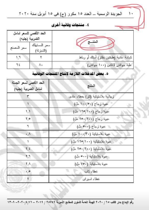 واعلنت الحكومة في الجريدة الرسمية لها “الوقائع المصرية ” في عددها رقم 15 مكرر بتاريخ أمس الاربعاء قوائم الاسعار لأصناف المطهرات والكحولات والكمامات كالتالي :