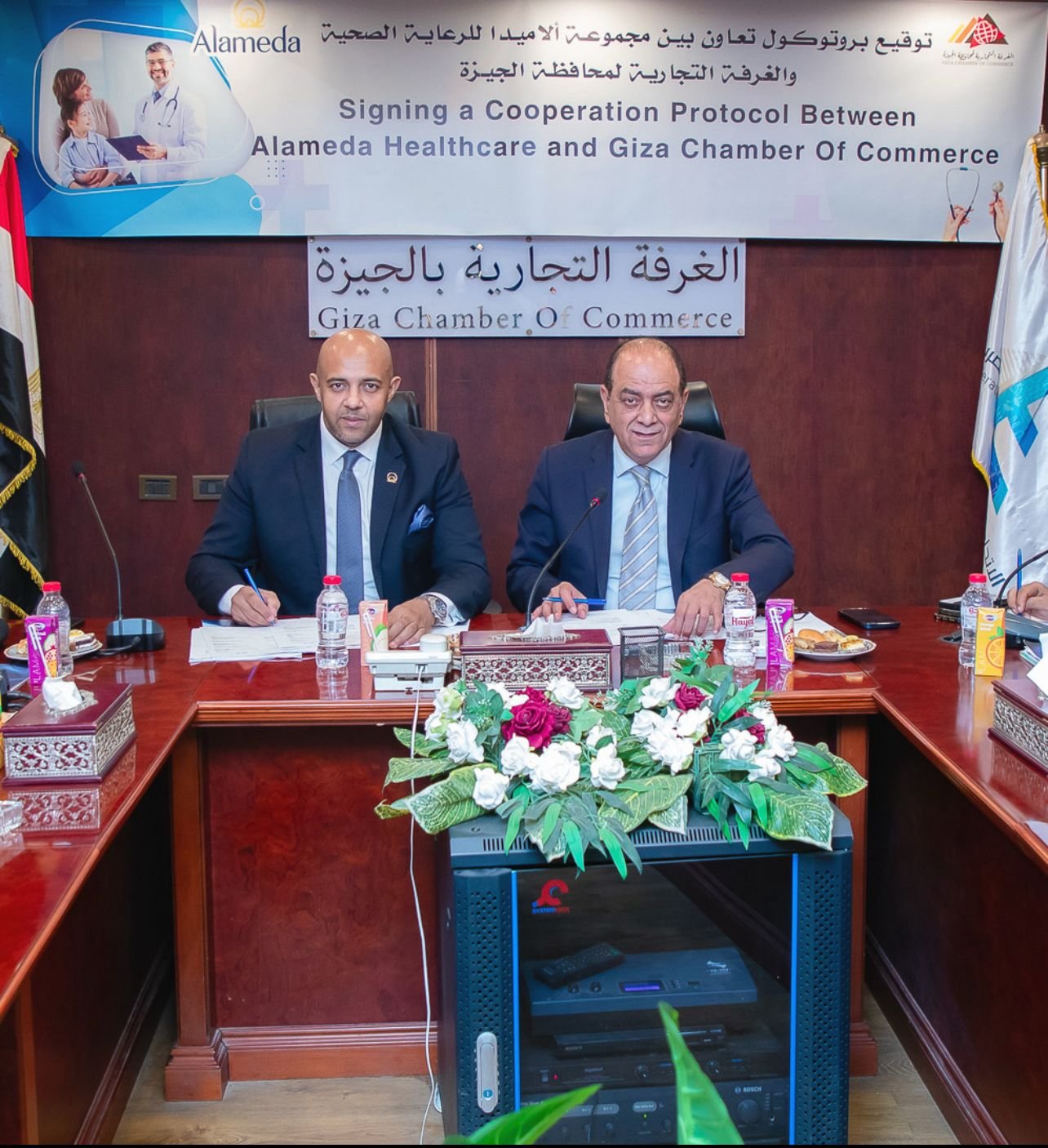 وقد تم التوقيع الرسمي على هذا البرتوكول بحضور كل من إسلام إدريس، الرئيس التنفيذي لقطاع التسويق ورئيس قطاع النقد والنقابات بمجموعة «ألاميدا للرعاية الصحية»، والمهندس أسامة الشاهد، رئيس مجلس إدارة الغرفة التجارية بالجيزة. وتهدف هذه الشراكة إلى تحقيق رؤية الطرفين المشتركة والمعنية بتحسين الصحة العامة للمجتمعات التي يعملون بها، وبالأخص مجتمع الأعمال، نظرًا للدور المحوري الذي يلعبه في دفع عجلة الإنتاج والتقدم الاقتصادي.