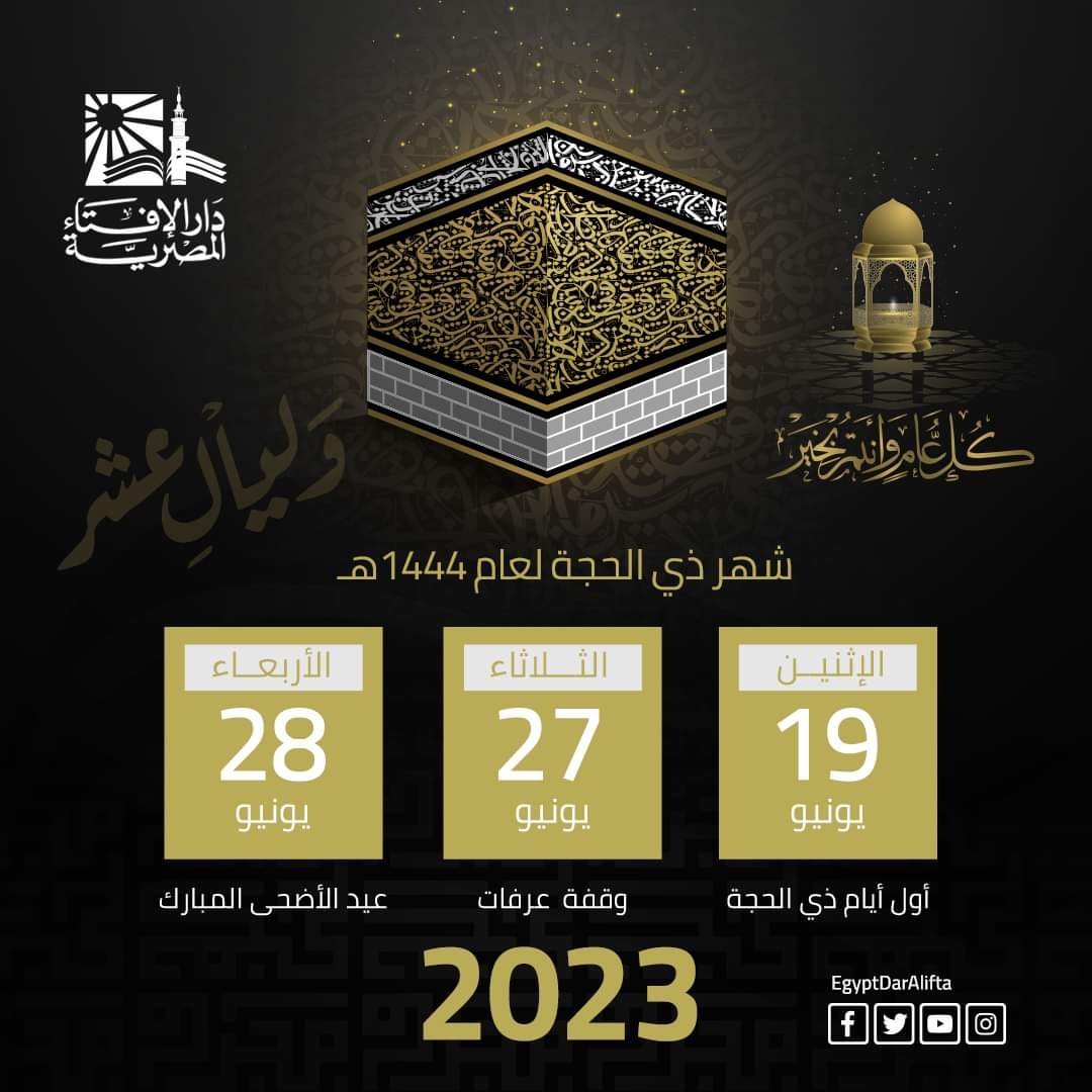 الأربعاء 10 ذي الحجة 1444هـ الموافق 28-6-2023م أول أيام عيد الأضحى المبارك