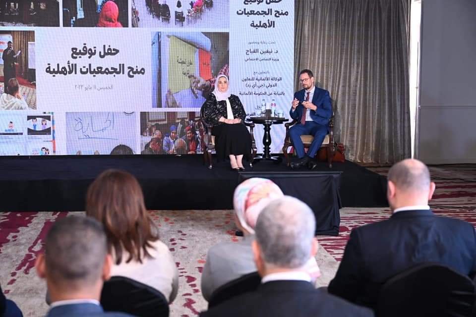 شهدت السيدة نيفين القباج وزيرة التضامن الاجتماعي حفل توقيع منح الجمعيات الأهلية من أجل تعزيز الفرص المتكافئة للفئات الأولى بالرعاية، والذي ينفذ بالتعاون بين وزارة التضامن الاجتماعى والوكالة الألمانية للتعاون الدولي “جي اي زد”، وذلك بحضور السيد هولجر ايلى، رئيس التعاون الإنمائي الألماني بالسفارة الألمانية بمصر، والسيد كاي أندراشكو نائب مدير الوكالة الألمانية للتعاون الدولي، والأستاذ أيمن عبد الموجود مساعد وزيرة التضامن الاجتماعى لشئون العمل الأهلي وقيادات العمل بالوزارة.