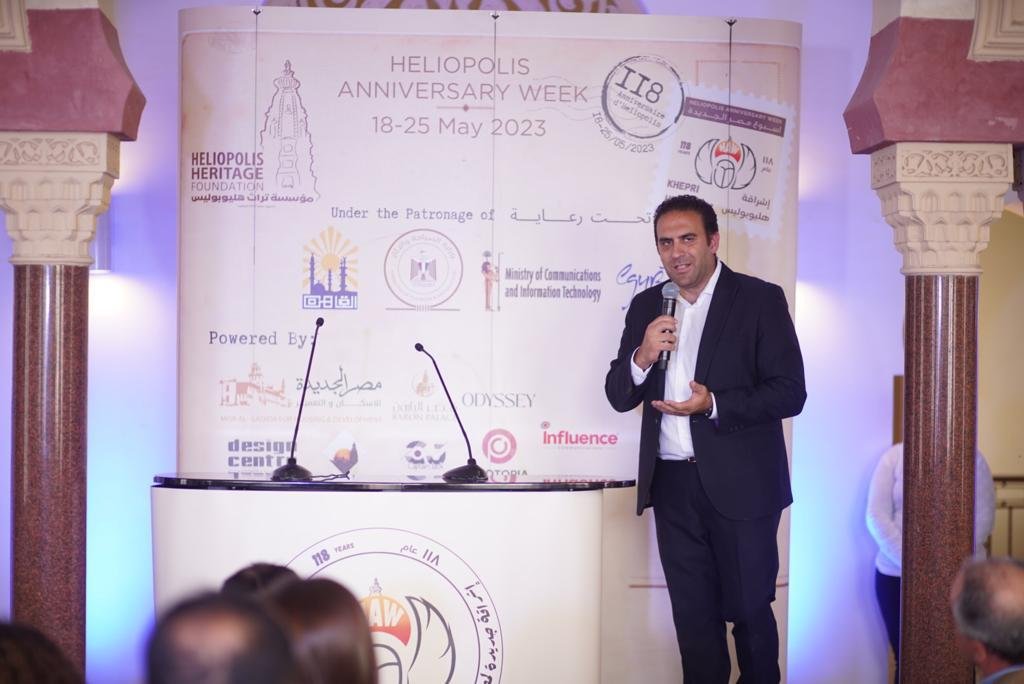 حضر المؤتمر الصحفي كل من الأستاذ شكري أسمر -رئيس مجلس أمناء مؤسسة تراث هليوبوليس، والأستاذة هالة الأسمر -منسق مبادرة تراث مصر الجديدة ,والسيد تامر ناصر -المدير التنفيذي لشركة مصر الجديدة. و د. خالد العادلي رئيس مجلس ادارة شركة مصر الجديدة