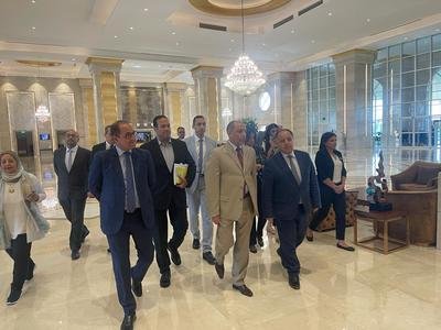 تفقد د.معيط، يرافقه أحمد كجوك نائب الوزير للسياسات المالية، مقر انعقاد اجتماع مجلس إدارة البنك الآسيوي العالمي متعدد الأطراف بالعاصمة الإدارية.