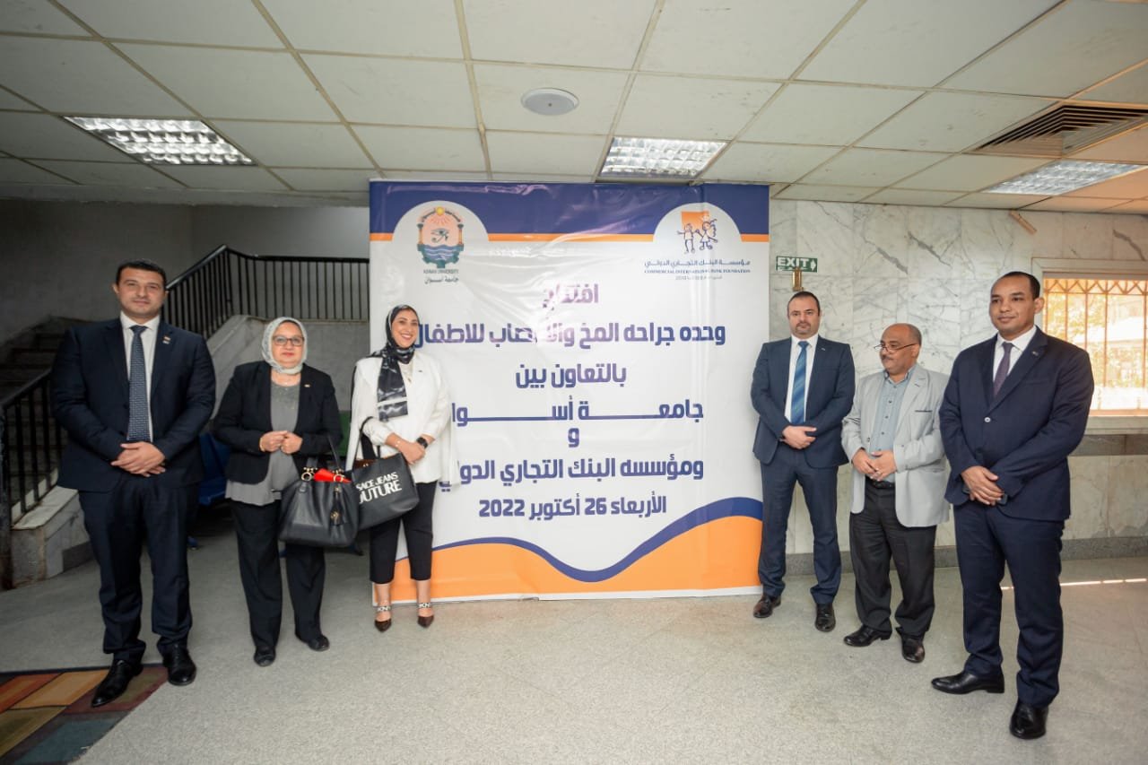 وساهمت مؤسسة البنك التجاري الدولي، في إنشاء أول مركز لجراحة المخ والأعصاب للأطفال في صعيد مصر حيث يتكون المركز من رعاية مركزة تضم (6 أسرة)، ورعاية متوسطة تضم (6 أسرة)، وقسم داخلي يحتوي على (10 أسرة). كما تم تجهيز المركز بجهازين أشعة تلفزيونية، أحداهما خاص بجراحة المخ والأعصاب، والآخر للرعاية المركزة، إلى جانب تجهيز الوحدة بجهاز تعقيم خاص بها. وتضم الرعاية المركزة أجهزة تنفس صناعي وأحدث الأجهزة لمتابعة الوظائف الحيوية، بالإضافة إلى أحدث أجهزة ضخ المحاليل، وتشمل الوحدة غرفة لأعضاء هيئة التدريس، وسكرتارية وغرفة للطبيب المقيم، وغرفة تمريض.