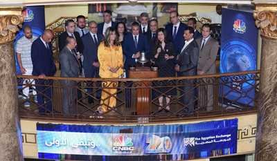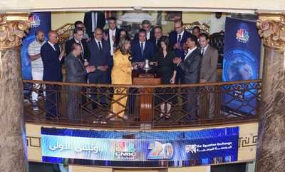 استضافت قاعة التداول بمقر البورصة المصرية اليوم الاثنين، الموافق 24-يوليو-2023، فريق عمل قناة CNBC عربية وذلك خلال فعالية “قرع الجرس” والتي تم تنظيمها احتفالا بمرور عشرين عاما على انطلاقة القناة، حيث قامت السيدة/ هبة الصيرفي – نائب رئيس البورصة المصرية والسيدة/ نجوى عسران – المدير الإقليمي للقناة بقرع جرس بدء التداول بالبورصة المصرية صباح اليوم، وقد شارك في الاحتفال لفيف من الخبراء والقيادات الاقتصادية والإعلامية.