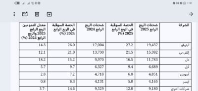 ولم تشهد تصنيفات أكبر 6 موردين على مستوى العالم أي تغييرات جوهرية خلال الربع الرابع من عام 2025 (انظر الجدول 1)، في حين نجح الموردون الثلاثة الأوائل (لينوفو، وإتش بي، ودل) في تعزيز حصصهم السوقية على أساس سنوي.