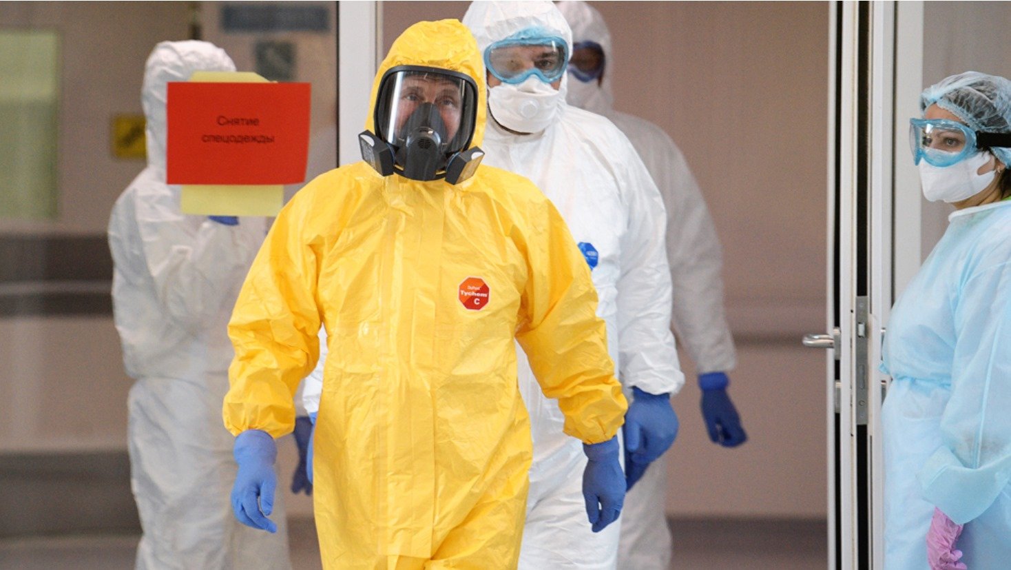 وتفقد بوتين خلال زيارته إلى المستشفى حالة الأوضاع فيها وهو يرتدي ملابس للوقاية الصحية، وتحدث مع الأطباء هناك حول سير عملهم.