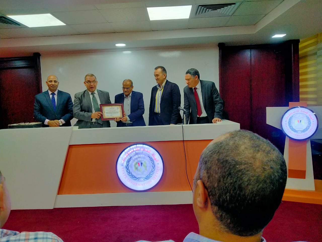 ويتقدم فتحى السايح بالشكر والعرفان للدكتور ضياء رشوان رئيس الهيئة؛ وللدكتور احمد ابو زايد رئيس قطاع المعلومات والبحوث وشبكة الإنترنت الذى تفضل بترشحه واختياره لنيل الاب المثال؛ بتدعيم من المستشار الاعلامى احمد صلاح رئيس الإدارة المركزية للتحرير والنشر ودعم المستشار الاعلامى صبحى عبد البصير وترشيح الأستاذة سهام فاروق مدير عام الإدارة العامة للترجمة؛ وقام بتسليم شهادة التقدير نيابة عن الدكتور ضياء رشوان رئيس الهيئة من اليمين اللواء احمد كساب رئيس الادارة المركزية لمكتب رئيس الهيئة واللواء محمد حسين رئيس قطاع الخدمات المركزي والمستشار الاعلامى صالح عبد المنعم والدكتور محمد عطا الله وكيل اول الوزارة للشئون المالية والإدارية بالهيئة؛ والاستاذ احمد ابراهيم مدير عام شؤون العامين بالهيئة.