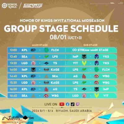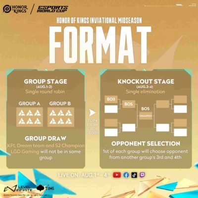 وستقام بطولة Honor of Kings Invitational لنصف الموسم 2024 في الرياض بطريقة ” robin من دور واحد، حيث يتمّ تقسيم الفرق إلى مجموعتين؛ ولتحديد ترتيب الفرق في كلّ مجموعة، ستتنافس الفرق المشاركة في مباريات من دور واحد؛ تنتقل بعدها الفرق الأربعة الأولى من كلّ مجموعة إلى مراحل المباريات الإقصائية. ومن المقرر أن تبدأ مباريات ربع النهائي في 3 أغسطس، وستشمل منافسات من ثلاث مباريات، تليها مواجهات نصف النهائي والنهائي، والتي تتضمن مباريات بنظام خمس جولات. وتضم قائمة الفرق المتنافسة: