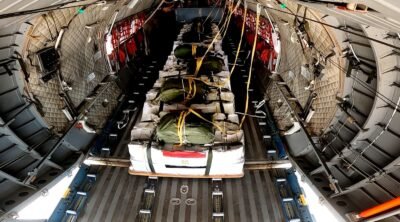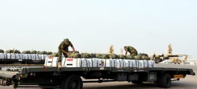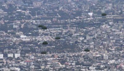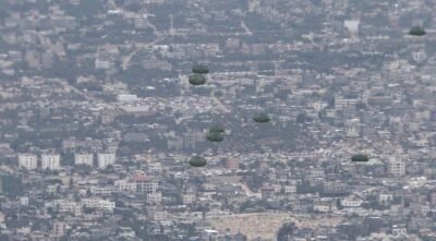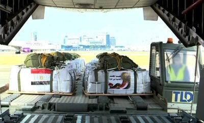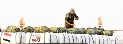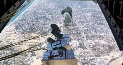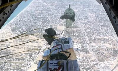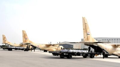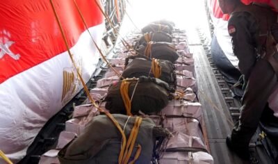 أقلعت 4 طائرات نقل عسكرية من جمهورية مصر العربية محملة بأطنان من المساعدات الغذائية لتنفيذ أعمال الإسقاط الجوى على المناطق التى يصعب الوصول إليها براً بقطاع غزة ، وذلك لتخفيف حدة الأوضاع المعيشية الصعبة ونقص الإحتياجات الإنسانية التى يعانى منها سكان القطاع ، هذا بالتزامن مع إستمرار تقديم المساعدات براً .