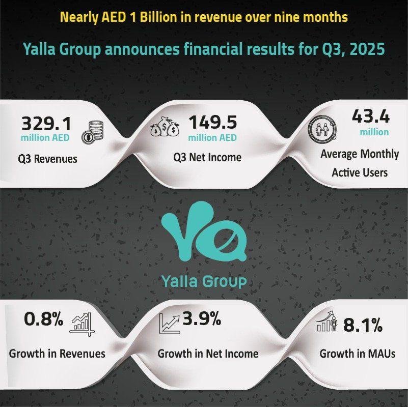 • Yalla Group reports net income of AED 149.5 million in Q3, up by 3.9%