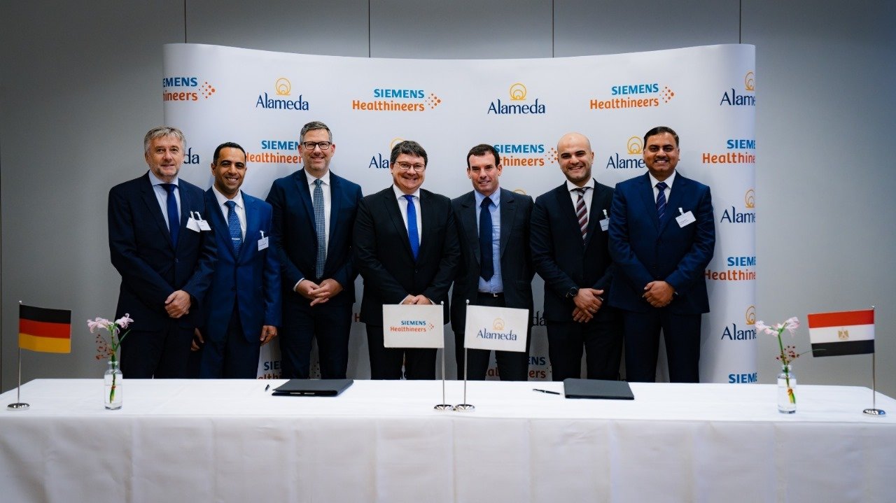 The signing ceremony held at Siemens Healthineers’ headquarters in Erlangen, Germany was attended by Dr. Fahad Khater, Chairman of Alameda Healthcare Group, and Neeraj Mishra, Group CEO, as well as Eng. Amro Kandil, Managing Director of Siemens Healthineers Egypt, Ole Per Maloy, Managing Director, Middle East and Africa at Siemens Healthineers and Dr. Bernd Ohnesorge, President of Europe, Middle East, and Africa at Siemens Healthineers.